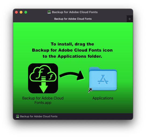 To install, drag the Backup for Adobe Cloud Fonts icon to the Application icon