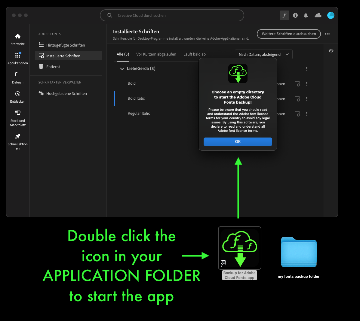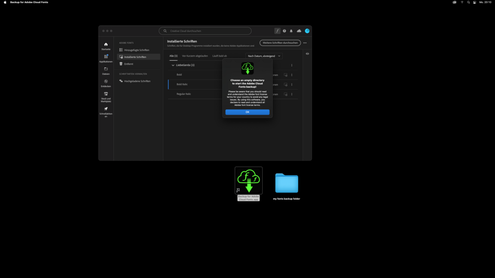 - Start the Backup for Adobe Cloud Fonts App