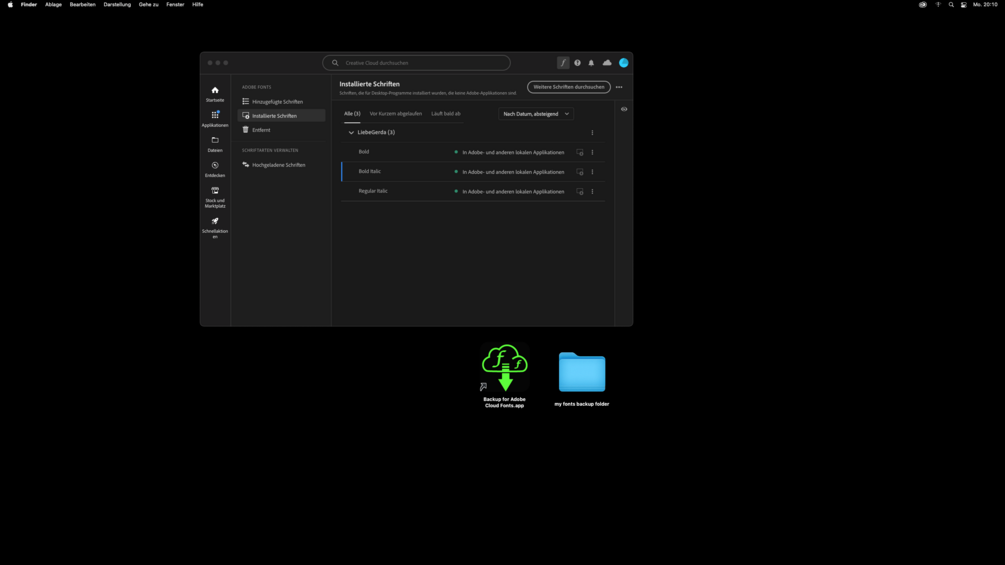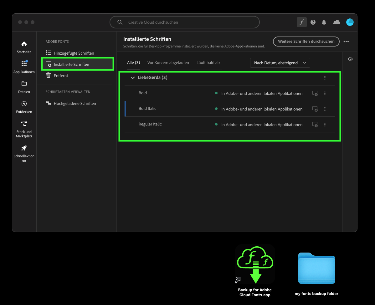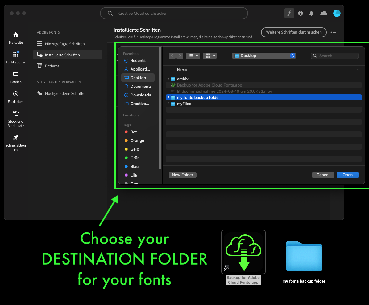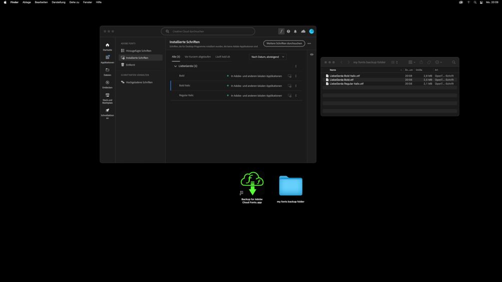 Backup for Adobe Cloud Fonts is a simple app for macOS that allows you to quickly backup your installed Adobe Cloud fonts locally with only 3 clicks.